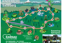 Kindererlebnisberg Sattelberg Der 1.253 Meter hohe Sattelberg im Ortsteil Ramsau-Rössing ist DER Kinderberg schlechthin. Kinderclub-Maskottchen Kali der Ramsaurier hat sich hier einiges einfallen lassen und garantiert kleinen und großen Gästen ein tolles Urlaubserlebnis. Mehr Infos