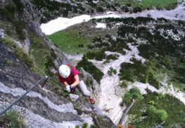 Rosina Klettersteig Der Klettersteig Rosina ist der anspruchsvollste Klettersteig der drei Klettersteige in der Silberkarklamm, ein vertikaler Stahlseilakt in Kombination mit toller Aussicht auf die umliegende Bergwelt. Der Erbauer Hans Prugger hat ein vertikales Meisterstück geschaffen, welches nach der luftigen Seilbrücke pfeilgerade vom Klammbach bis zum Ausstieg verläuft. Da es keine Gehstrecken oder Bänder zum Ausrasten gibt, ist Armpower bis zum Ausstieg gefragt. Die Kombination Hias Klettersteig, Rosina Klettersteig und Siega Klettersteig ist ein perfektes Halbtagesprogramm, das in der gemütlichen Silberkarhütte seinen Ausklang findet. Mehr Infos