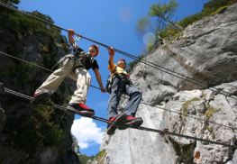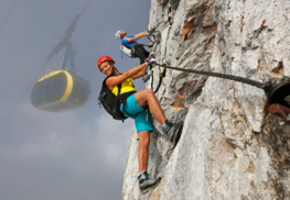 Skywalk Klettersteig Der neue Sky Walk-Klettersteig führt tatsächlich dem Himmel entgegen und wird anspruchsvolle, den Schwierigkeiten gewachsene Klettersteigfans mit Sicherheit begeistern. Viel Armkraft, Mut und Erfahrung sind allerdings notwendig, um den extrem schweren Sportklettersteig bezwingen zu können und dabei auch Spaß zu haben - also nichts für Gelegenheits-Klettersteiggeher oder gar Anfänger! Mehr Infos