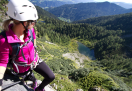 Franzi Klettersteig Ein schöner Klettersteig, welcher den perfekten Kontrast zu den schroffen Dachstein-Ferratas darstellt. Eingebettet in eine fast schon kitschig schöne Berglandschaft verläuft der Eisenweg an der Ostseite der Gasselhöhe und endet auf einem Wiesenkamm. Beim anregenden Kraxeln im Urgestein hat man immer zumindest einen der drei Seen im Blick, welche im Kar zwischen Rippetegg und Schober liegen. Der Klettersteig lässt sich ideal mit einer Wanderung zu den Seen bzw. mit einer Gipfelbesteigung von Rippetegg oder Schober verbinden - die Ferrata passt ideal in das Wanderparadies der Reiteralm. Mehr Infos